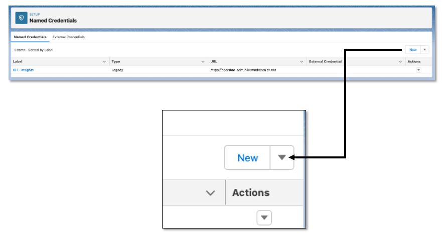 The Komodo Insights Component Named Credential from the initial installation needs to be updated to include the newly created authentication provider.