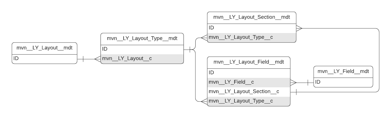mvn__LY_Layout_Field__mdt) - connects the Layout Type and Field custom metadata types. Layout Field records control which fields appear on a layout. -