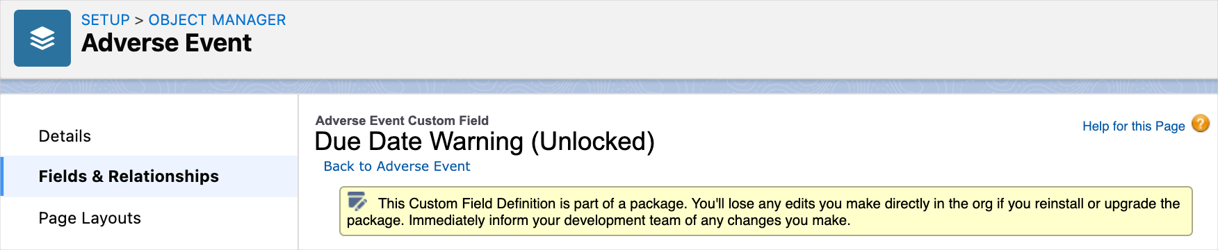 | SObjects | ✓ | ✓ | - Fields may be added. - Field Audit History field selections may be modified. | ||