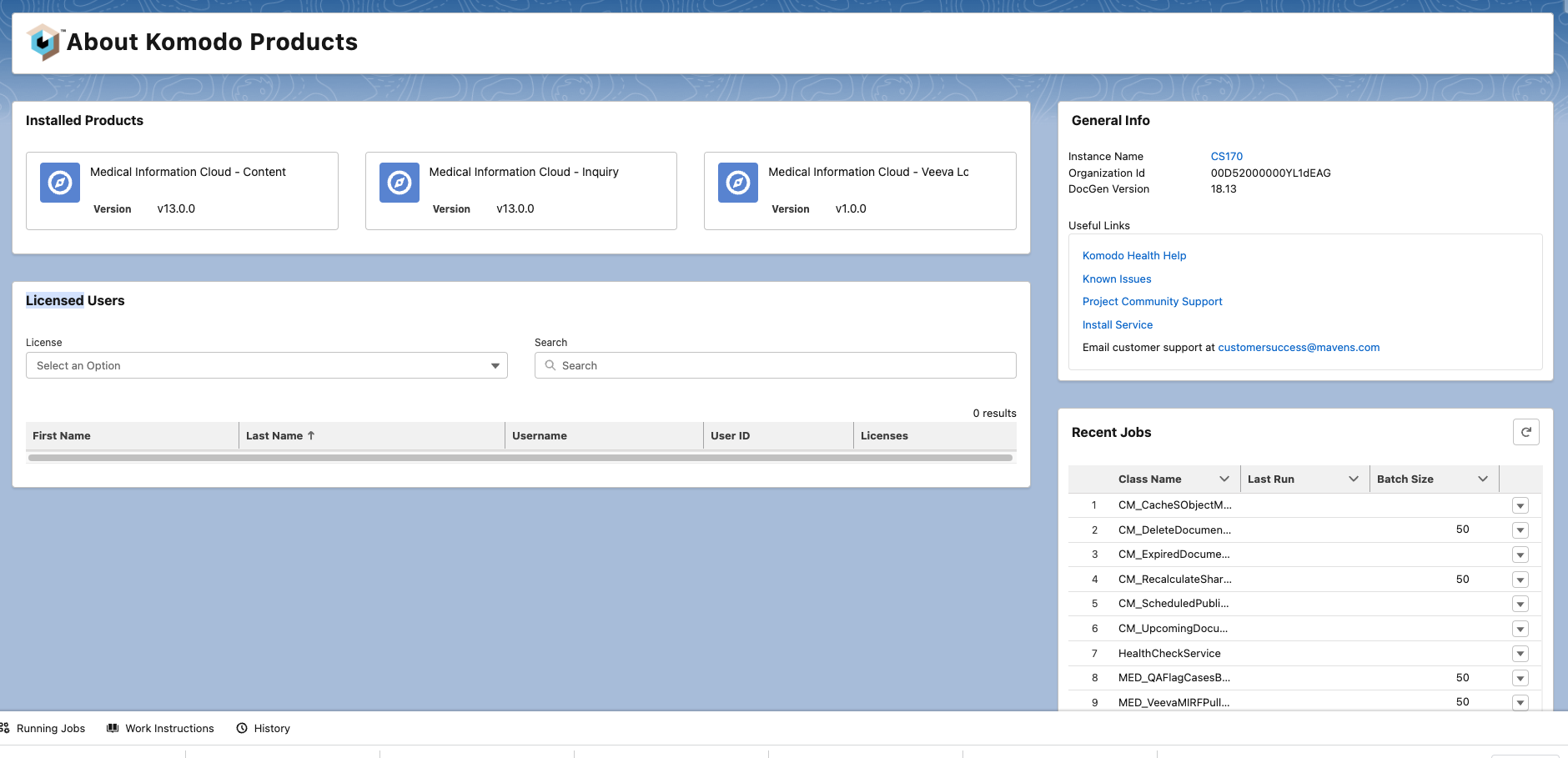 The About Komodo Products page contains key information about your instance and can be accessed via the App Launcher.