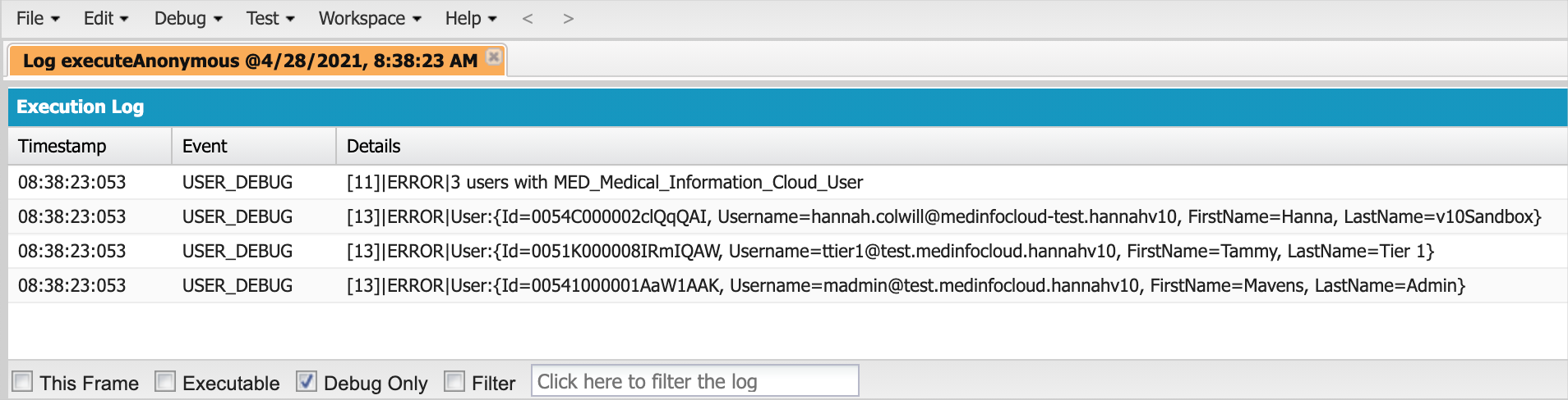 USER_DEBUGevent rows list the total number of users that are assigned the permission and the specific users that are assigned the permission.