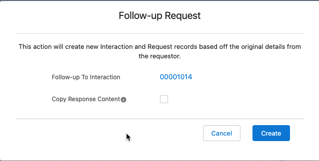 4. Click Create. You are automatically brought to the new Request page within the new Interaction.