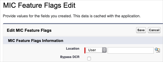1. Locate the MIC Feature Flag custom setting within the Salesforce administrative user interface.