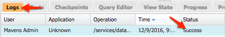 A status of "Success" should be displayed in the log panel.