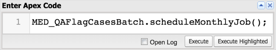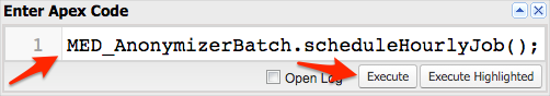 MED_AnonymizerBatch.scheduleHourlyJob();and then click Execute.:::
