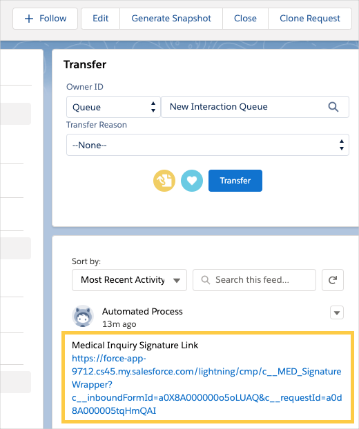 Inline Component - a component may be placed on the Request lightning record page to display the signature inline on a request as opposed to the other options that open the signature within a separate tab within the workspace.