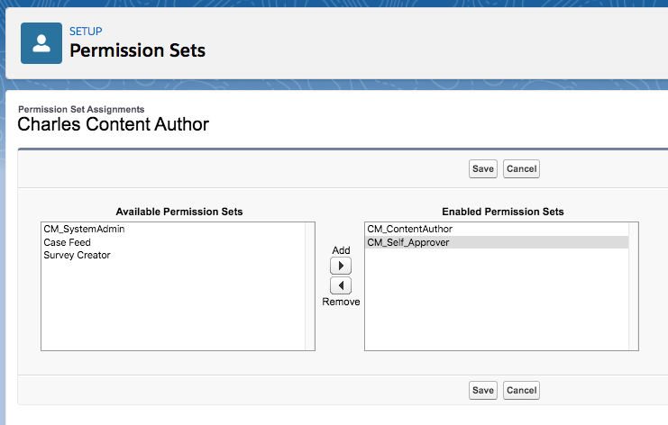 | CM_Self_Approver | mvn__CM_Self_Approver | Grants users the ability to assign workflow activities to themselves. |
