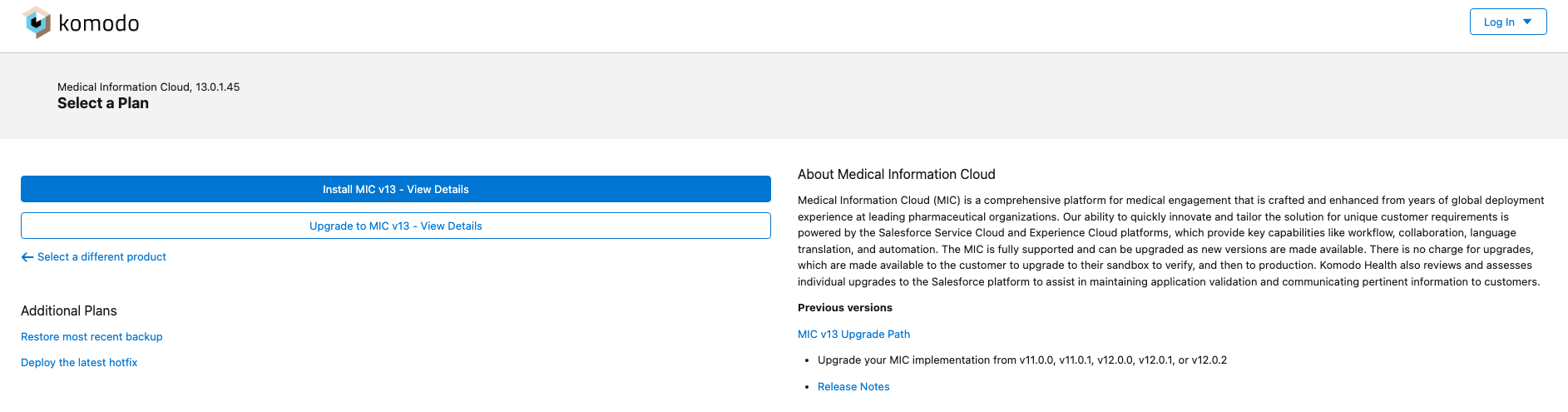 The About Komodo Products page was updated in V14 to provide a more holistic view of your installed products. Information includes: